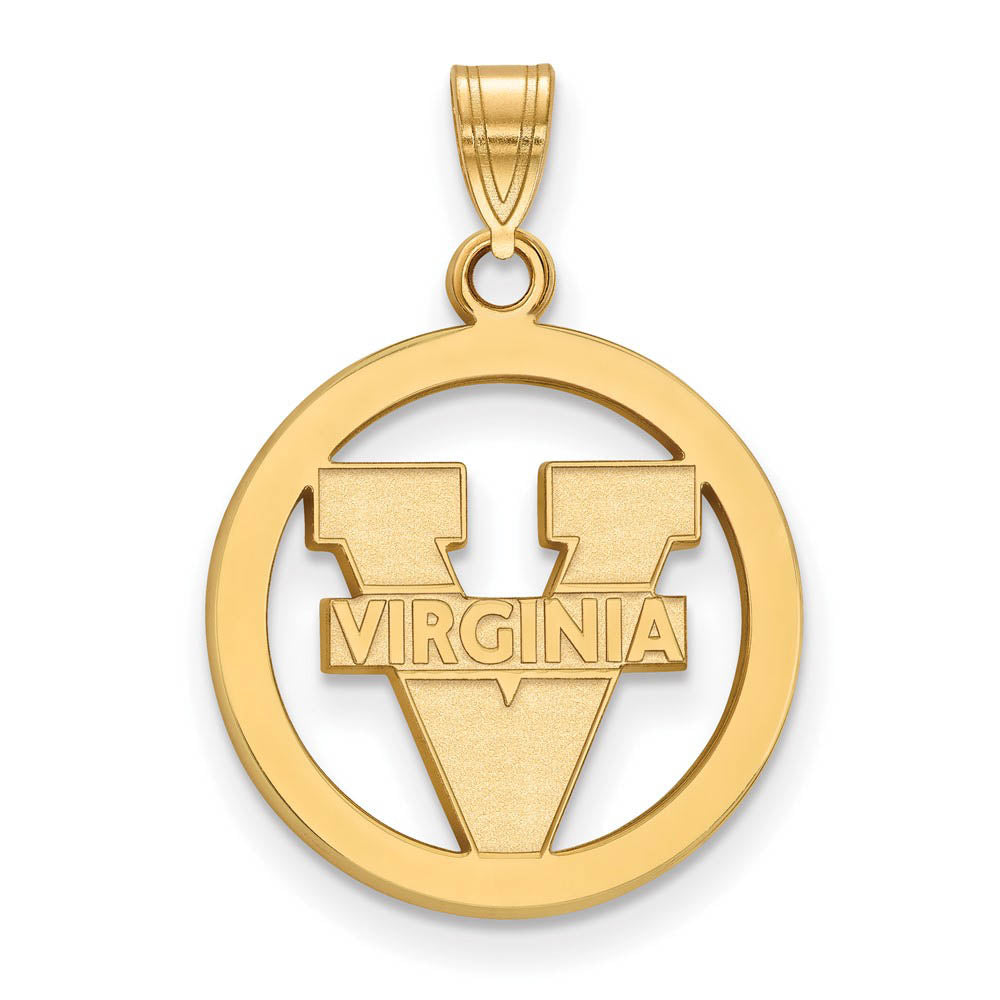 14k Gold Plated Silver U. of Virginia SM 'V' Logo Circle Pendant - Black Bow Jewelry Company