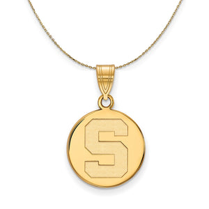 14k Yellow Gold Michigan State Medium Initial S Disc Necklace