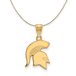 • If you are a fan of Michigan State University and the Spartans then you need to show your school spirit with this Michigan State University pendant. We are a certified college jewelry retailer and this authentic item is officially licensed. It is crafted from 14k Yellow Gold and crafted by LogoArt in the USA. Includes a 24 inch, 0.8mm 14k yellow gold cable chain with a lobster clasp.