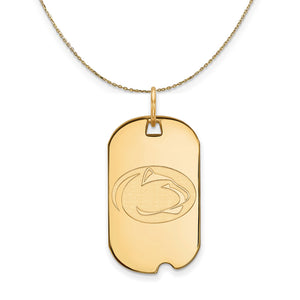 • If you are a fan of Penn State University and the Nittany Lions then you need to show your school spirit with this Penn State University pendant. We are a certified college jewelry retailer and this authentic item is officially licensed. It is crafted from 14k Yellow Gold and crafted by LogoArt in the USA. It is approximately 18mm (11/16 inch) in width by 30mm (1 3/16 inch) in length. The total length with the jump ring or bail is 36mm (1 3/8 inch). Includes a 22 inch, 0.8mm 14k yellow gold cable chain with a lobster clasp.