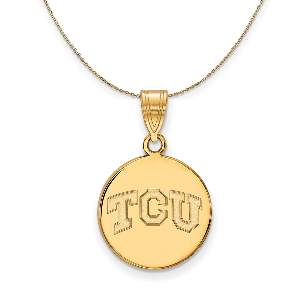 If you are a fan of Texas Christian University and the Horned Frogs then you need to show your school spirit with this Texas Christian University pendant. We are a certified college jewelry retailer and this authentic item is officially licensed. It is crafted from 14k Yellow Gold and crafted by LogoArt in the USA. Includes a 24 inch, 0.8mm 14k yellow gold cable chain with a lobster clasp.