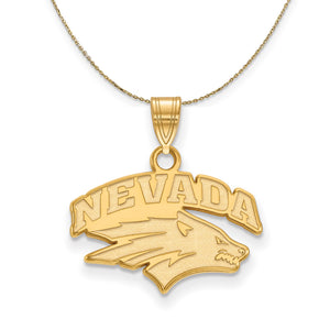• If you are a fan of The University of Nevada and the Wolf Pack then you need to show your school spirit with this University of Nevada pendant. We are a certified college jewelry retailer and this authentic item is officially licensed. It is crafted from 14k Yellow Gold and crafted by LogoArt in the USA. Includes a 22 inch, 0.8mm 14k yellow gold cable chain with a lobster clasp.