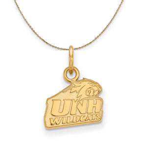 If you are a fan of The University of New Hampshire and the Wildcats then you need to show your school spirit with this University of New Hampshire pendant. We are a certified college jewelry retailer and this authentic item is officially licensed. It is crafted from 14k Yellow Gold and crafted by LogoArt in the USA. Includes a 30 Inch, 0.8mm 14k yellow gold cable chain with a lobster clasp.