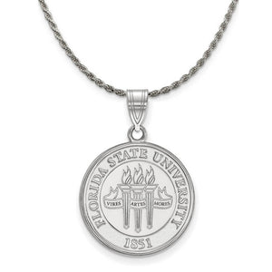 If you are a fan of Florida State University and the footbal team then you need to show your school spirit with this Florida State University pendant. We are a certified college jewelry retailer and this authentic item is officially licensed. It is crafted from Sterling Silver and crafted by LogoArt in the USA. Includes a flexible and strong diamond cut rope chain. This stunning chain is 2.25mm in width, 20 inches in length and features a sturdy lobster claw clasp. The chain is crafted in Italy.