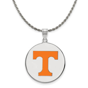 Sterling Silver U. of Tennessee XL Enamel 'T' Disc Necklace