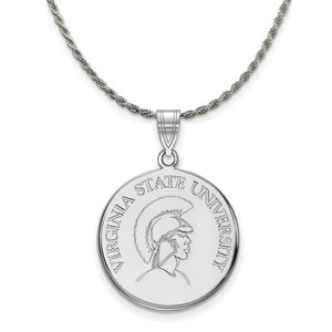 • If you are a fan of Virginia State University and the Trojans then you need to show your school spirit with this Virginia State University pendant. We are a certified college jewelry retailer and this authentic item is officially licensed. It is crafted from Sterling Silver and crafted by LogoArt in the USA. Includes a flexible and strong diamond cut rope chain. This stunning chain is 2.25mm in width, 20 inches in length and features a sturdy lobster claw clasp. The chain is crafted in Italy.