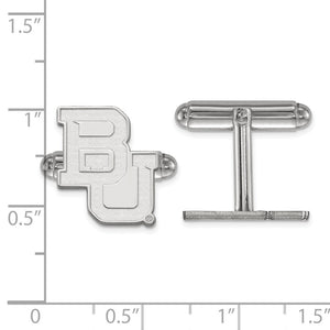 Show your school spirit with this pair of Baylor University cuff links. They are created from Rhodium Plated Sterling Silver and measures 15 millimeters in length. We are a certified Collegiate jewelry retailer and this authentic item is officially licensed. It is crafted in the USA. This item is not currently in-stock. Once you place your order, please allow us 5 to 7 business days to make it for you.