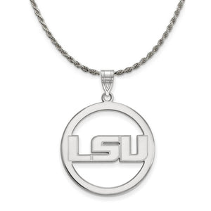 If you are a fan of Louisiana State University and the Fightin Tigers then you need to show your school spirit with this Louisiana State University pendant. We are a certified college jewelry retailer and this authentic item is officially licensed. It is crafted from Sterling Silver and crafted by LogoArt in the USA. Includes a flexible and strong diamond cut rope chain. This stunning chain is 2.25mm in width, 20 inches in length and features a sturdy lobster claw clasp. The chain is crafted in Italy.
