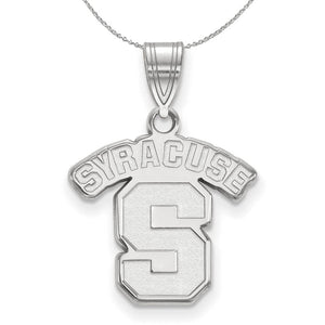 • If you are a fan of Syracuse University and the Oranges then you need to show your school spirit with this Syracuse University necklace. We are a certified college jewelry retailer and this authentic item is officially licensed. It is crafted from Sterling Silver and crafted by LogoArt in the USA. Includes a 20 Inch, 1.25mm cable chain.