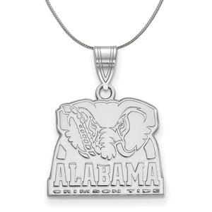 • If you are a fan of The University of Alabama and the Crimson Tide then you need to show your school spirit with this University of Alabama necklace. We are a certified college jewelry retailer and this authentic item is officially licensed. It is crafted from Sterling Silver and crafted by LogoArt in the USA. Includes a 20 Inch, 1.25mm sterling silver franco chain.