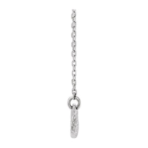 A simplistic yet elegant necklace design with a traditional or trendy style will give you a tailored look that goes from daytime wear to a night out on the town with ease. This small infinity necklace created from .950 platinum features a polished rope textured design. The approximate pendant size is 16mm (5/8 inch) in width by 6.5mm (1/4 inch) in length. The diamond-cut cable chain closes with a spring ring clasp, is 1mm in width and adjusts 16 to 18 inches in length. This is a made to order item and is estimated to ship in about 10 days. Please email service@theblackbow.com for more details.