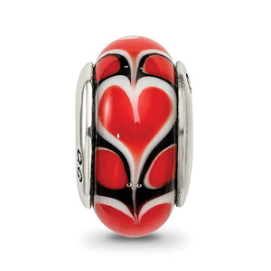Red Heart Glass Sterling Silver Bead Charm - Black Bow Jewelry Company