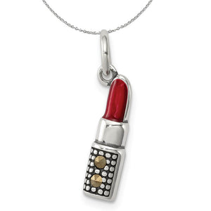 Start conversations wherever you go with a unique charm created to spark interest and reveal your individual style. This vibrant lipstick fashioned from antiqued sterling silver features an open back design accented with marcasite stones. It is approximately 4mm (1/8 Inch) in width by 16mm (5/8 Inch) in length and finished with a split jump ring. Includes a 1.25mm, 24 inch sterling silver cable chain.