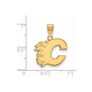 SS 14k Yellow Gold Plated NHL Calgary Flames Medium Pendant