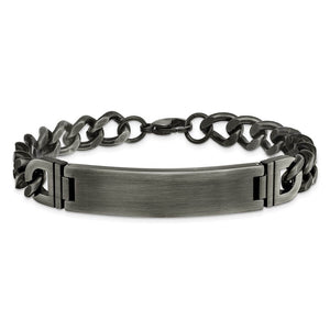 Stainless Steel Brushed & Antiqued Curb Link I.D. Bracelet, 8.75 Inch - Black Bow Jewelry Company