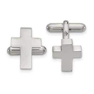 Stainless Steel Polished Cross Cuff Links, 13 x 18mm - Black Bow Jewelry Company