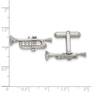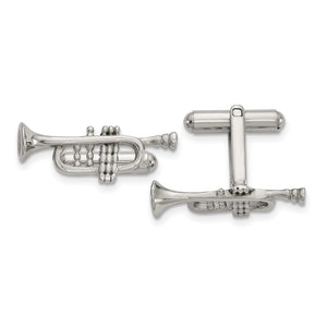 Stainless Steel Polished Trumpet Cuff Links, 27 x 10mm - Black Bow Jewelry Company
