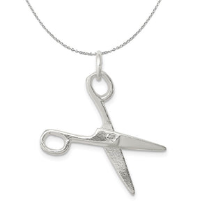 Add a little oomph to your career style with a unique statement pendant! This pair of scissors fashioned from polished sterling silver features a three-dimensional moveable design that is approximately 15mm (9/16 inch) in width by 30mm (1 1/8 Inch) in length, which includes the chain slide. Includes a 1.25mm, 16 inch sterling silver cable chain.