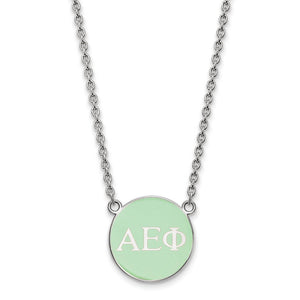 Sterling Silver Alpha Epsilon Phi Small Lt Green Enamel Disc Necklace