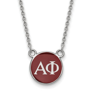 Sterling Silver Alpha Phi Small Red Enamel Disc Necklace