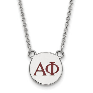 Sterling Silver Alpha Phi Small Red Enamel Greek Letters Necklace