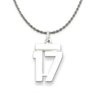 Celebrate your favorite sports player, lucky number or milestone date in your life with a prominent rhodium-plated sterling silver charm. Each polished number is approximately 18mm (11/16 inch) in length, which is finished with a 2mm top bar and a classic jump ring. Includes a flexible and strong diamond cut rope chain. This stunning chain is 2.25mm in width, 22 inches in length and features a sturdy lobster claw clasp. The chain is crafted in Italy.