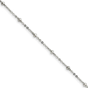 Sterling Silver Beaded Cable Chain Anklet, 9 Inch