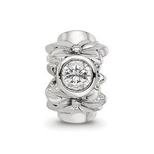 A lavish floral design graces this sterling silver charm with a striking combination of clear cubic zirconia stones. Measuring roughly 11 x 8mm with a 4mm core, it is interchangeable as well as compatible with Reflections and other popular 3mm width bead style bracelets and necklaces.