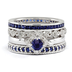 Sterling Silver, Created Sapphire & Diamond Paradise Stack Ring Set - Black Bow Jewelry Company