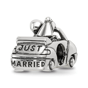 Sterling Silver & Crystal Just Married Bride & Groom Car Bead Charm