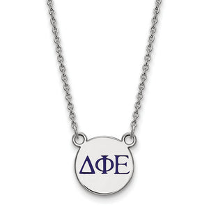 Sterling Silver Delta Phi Epsilon Small Blue Enamel Greek Necklace