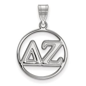 Sterling Silver Delta Zeta Medium Circle Greek Letters Pendant