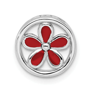 The options are limitless to brighten your style with sparkle and shine with this new and exciting line of Stackable Expressions pendant slides. Looks great alone or stacked with a large and medium pendant slide to create a simple and sleek or extravagant layered design. This red enameled flower slide is approximately 12mm (7/16 inch) in diameter and fashioned from tarnish resistant rhodium plated sterling silver. For best results when mixing and matching multiple slides we recommend using a Stackable Expressions custom designed pendant chain. Chain not included.