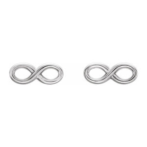 The infinity loop symbolizes perfection, eternity, and everlasting love. These small stud style earrings are created from polished sterling silver and include friction backs.