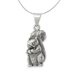 Sterling Silver Large Antiqued Squirrel with Nut Necklace - Black Bow Jewelry Company