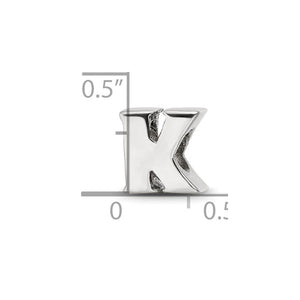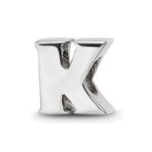 Sterling Silver Letter K Polished Bead Charm, 10mm