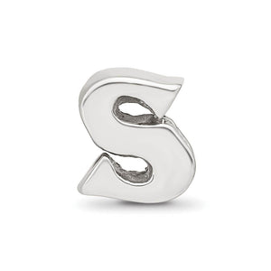 Sterling Silver Letter S Polished Bead Charm, 10mm