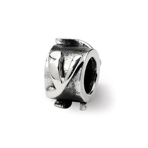 Be creative! Individual alphabet charms offer unlimited ways to customize your beaded jewelry. Handcrafted with an oxidized finish, each raised letter appears 3 times around this sterling silver charm so your message will never be lost. Measuring approximately 9 x 5mm with a 4mm center, they are interchangeable as well as compatible with Reflections and other popular 3mm width bead style bracelets and necklaces.