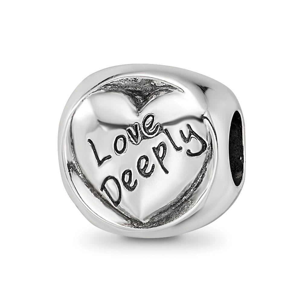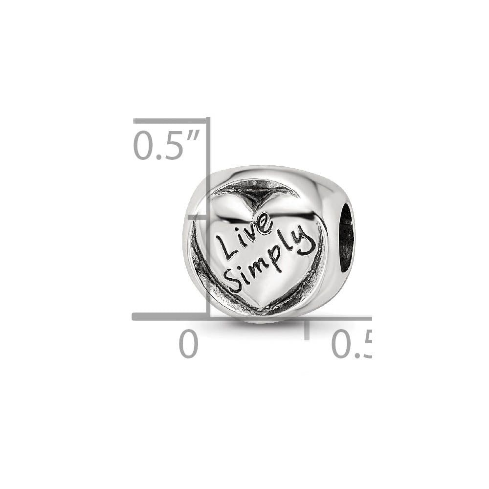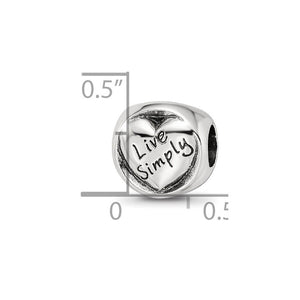 Create fashionable jewelry designs with this inspirational charm aimed to reflect your personality and lifestyle. Whether it is formal, casual, energetic or relaxed, this antiqued sterling silver bead will help tell your story. This single sterling silver charm features a three-sided design depicting the words Live Simply, Love Deeply, Laugh Often and measures approximately 10mm in width by 10mm in length with a 4mm center that is interchangeable as well as compatible with Reflections and other popular 3mm width bead style bracelets and necklaces.
