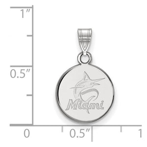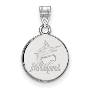 It is time to celebrate your favorite Major League Baseball (MLB) team, the Miami Marlins! We are a certified retailer, and this authentic women's small laser-etched pendant is officially licensed. It is created from rhodium plated sterling silver and approximately 12mm in width (7/16 inch or smaller than a dime). Chain not included. Made in the U.S.A.