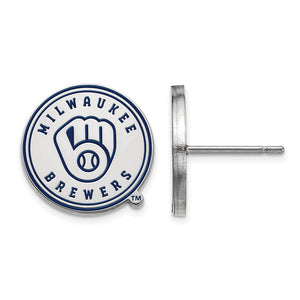 Sterling Silver MLB Milwaukee Brewers SM Enamel Disc Post Earrings