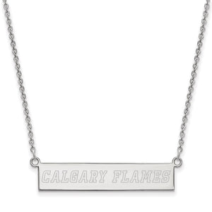 Sterling Silver NHL Calgary Flames SM Bar Necklace, 18 In