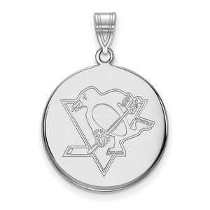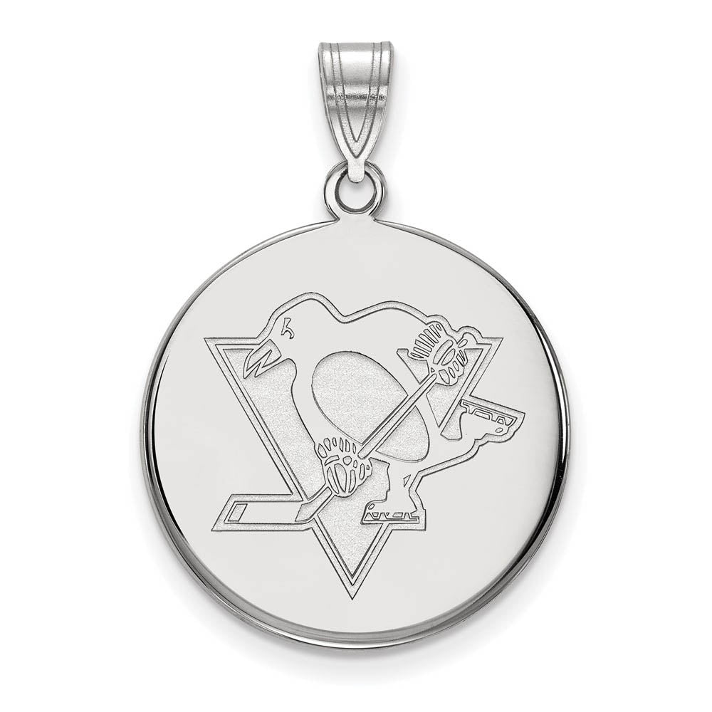 Sterling Silver NHL Pittsburgh Penguins LG Disc Pendant - Black Bow Jewelry Company
