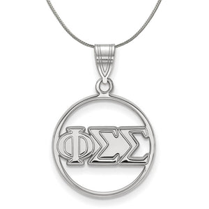Show your greek life spirit with this Phi Sigma Sigma Sorority pendant necklace. It is crafted with rhodium plated sterling silver and without the bail is 19mm in height and 18mm in width (0.75 in x 0.71 in). With the bail, the measurements are 25mm in height and 18mm in width. We are a certified LogoArt retailer and this authentic item is licensed by the Phi Sigma Sigma Sorority and Greek Life. This pendant necklace is made the USA. Includes a 24 Inch, 1.25mm sterling silver franco chain.