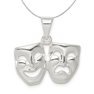 Show your appreciation for the arts with this comedy/tragedy mask pendant styled from polished sterling silver. It is approximately 23mm (15/16 Inch) in width by 23mm (1 Inch) in length, which includes the tapered bail. Includes a 1.25mm, 16 inch sterling silver cable chain.