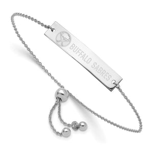 Sterling Silver Rhod. Plated NHL Buffalo Sabres Bar Adj Bracelet, 9 In - Black Bow Jewelry Company