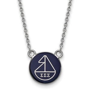 Sterling Silver Sigma Sigma Sigma Small Enamel Sailboat Disc Necklace