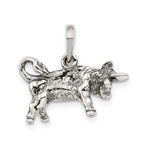 Sterling Silver Taurus the Bull Zodiac 3D Antiqued Pendant