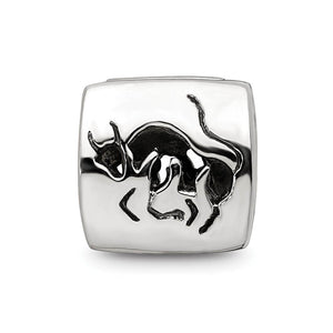 Zodiac sign of Taurus, the bull is for individuals with birthdays from April 21st to May 21st. This double sided; sterling silver charm measures approximately 12 x 13mm and has a 4mm core that is interchangeable as well as compatible with Reflections and other popular 3mm width bead style bracelets and necklaces. This item is backordered and we estimate it to ship in approx. 10-12 days. Please email service@theblackbow.com for more details.
