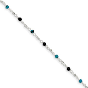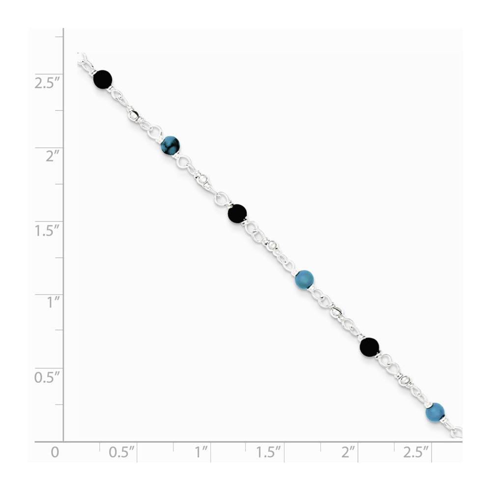 Sterling Silver Turquoise and Onyx, Beaded Anklet, 10 Inch